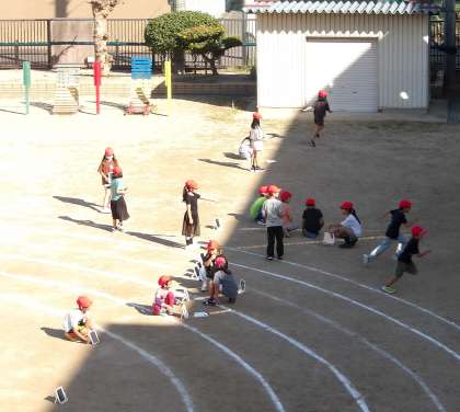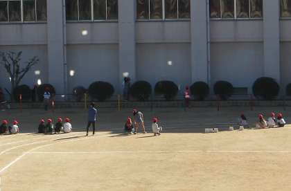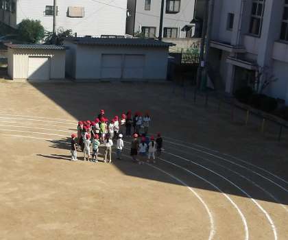 3年生の運動場での鏡を使った「太陽の光」の学習です。