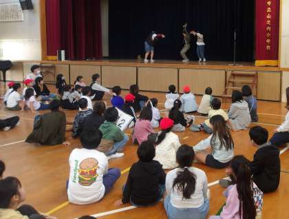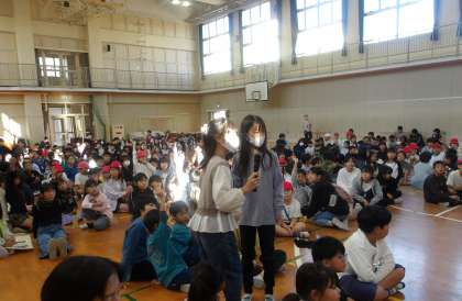 児童集会でのゲーム集会の「ジェスチャー当てゲーム」です。