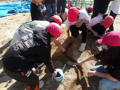 5年生の5時間目の理科の「流れる水のはたらき」の実験です。