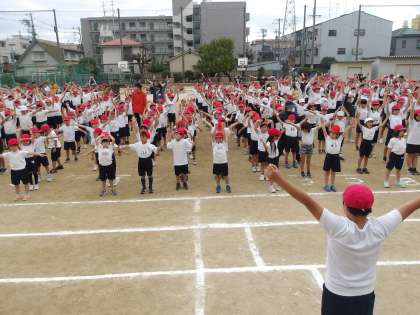 とてもよい態度で、きちんと並んだり、しっかり話を聞いたり、大きな動きでラジオ体操したりすることができました。