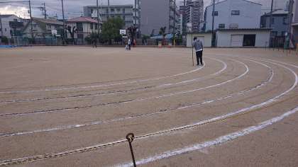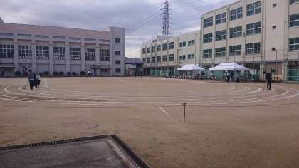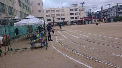 前日はずっと雨が降っていたので、朝から教職員が準備をしています。