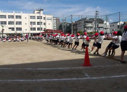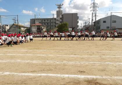 体つくり運動「低く強く力を合わせて!大綱引き!」