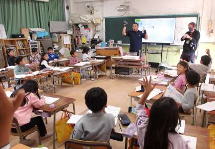 1年生が算数の「どちらの かさが おおきいかな」の学習です。