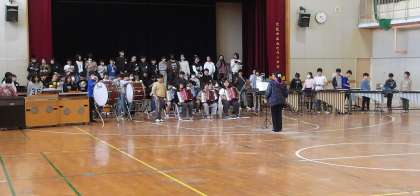 6年生全体が講堂で、音楽の合奏の練習をしています。