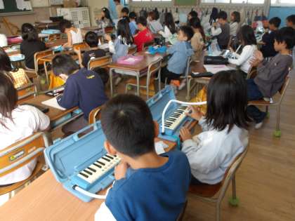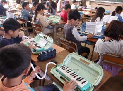 2年生が音楽の学習で鍵盤ハーモニカの練習をしています。