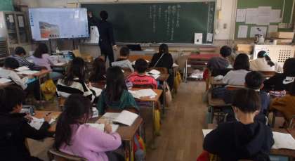 学習内容を確かめるための学習用端末を使ったクイズに答えました。