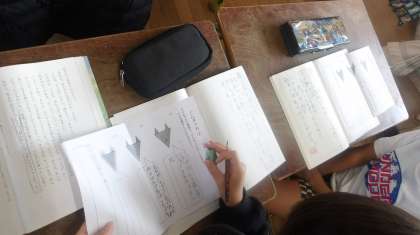 登場人物の言葉や行動から気持ちを考えて絵や文章に表しました。