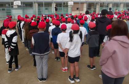 毎週月曜は、8時30分から運動場で児童朝会があります。