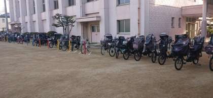 保護者の方にはとてもきれいに並べて自転車をとめていただきました。