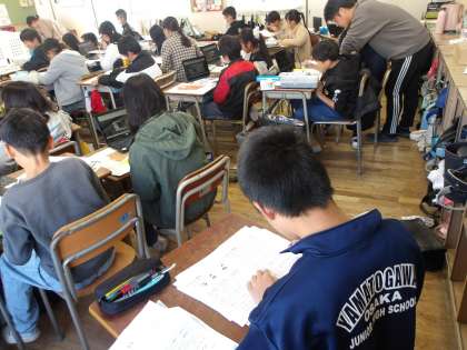 昨日と今日の2日間、「職場体験」で大和川中学の2年生3名が来ていました。