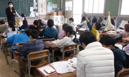 2年2組のくつ箱のくつはとてもきれいに並べられています。