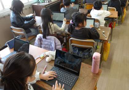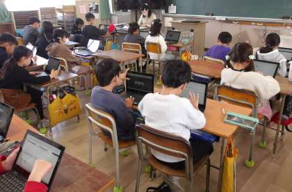 3年生が、学習者用端末を使い、理科のデジタルドリルの学習をしています。