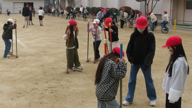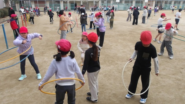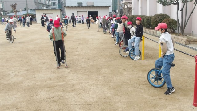 竹馬や一輪車、フラフープなどの運動にチャレンジしました。