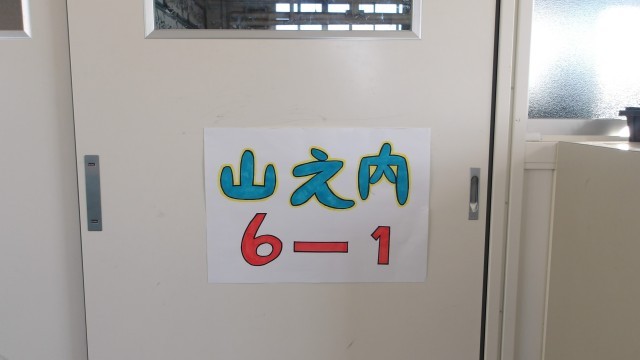 先週の「中学校体験」で中学生が掲示物として作ってくれた各クラスの素敵な掲示物を、中学校にお願いしていただき、各クラスの扉に貼っています。