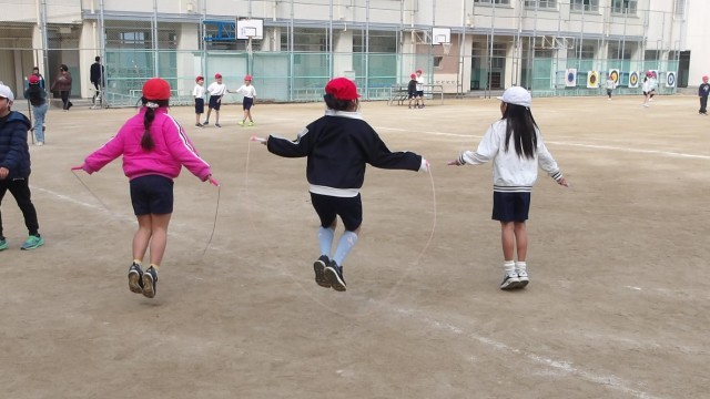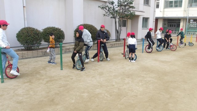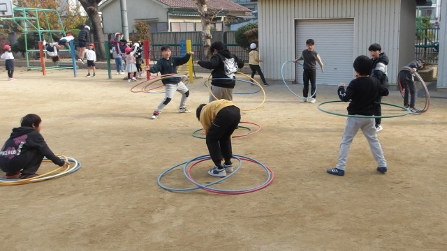 一輪車・フラフープ・竹馬が得意な人も、チャレンジする人もいて、たくさんの児童が運動場に出て楽しく元気よく遊んでいます。