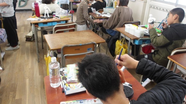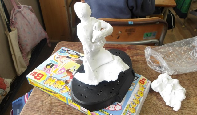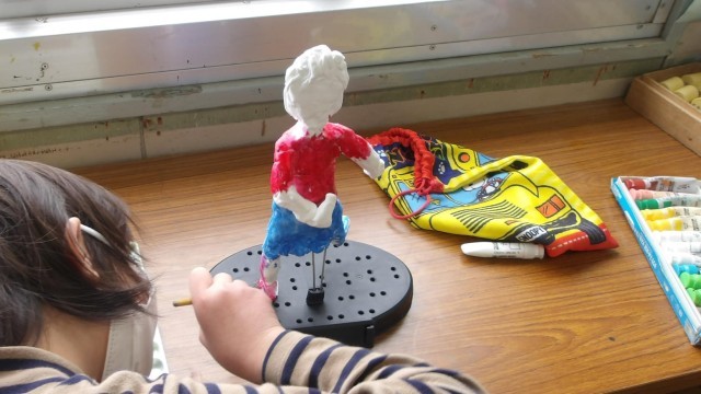 紙ねんどで未来の私の形をつくり、いよいろ色塗りをして完成に近づいています。