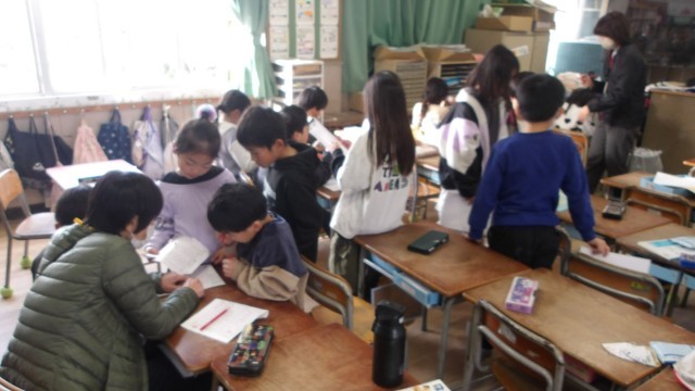 みんな一生懸命おぼえて先生に聞いてもらっています。