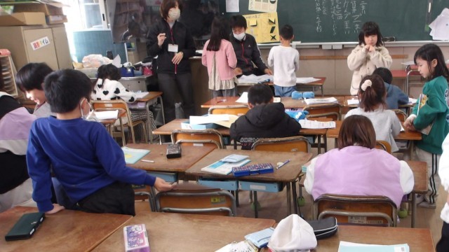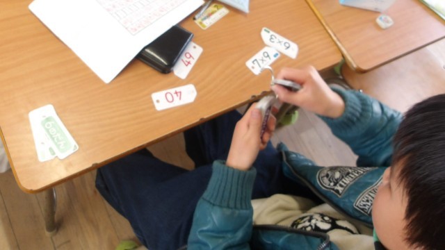 2年生が覚えた「九九」を先生に聞いてもらっています。