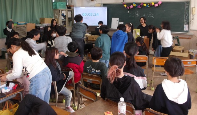 4年生がクラスで「お楽しみ会」をしています。