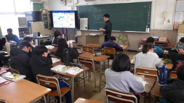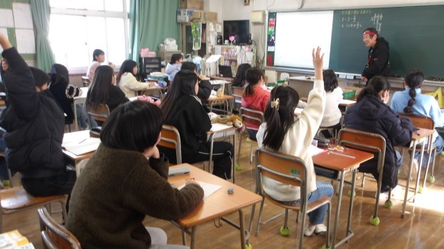 5年生は、算数で「わり算と分数」の学習をしたり、3学期の目標を考えたりしていました。
