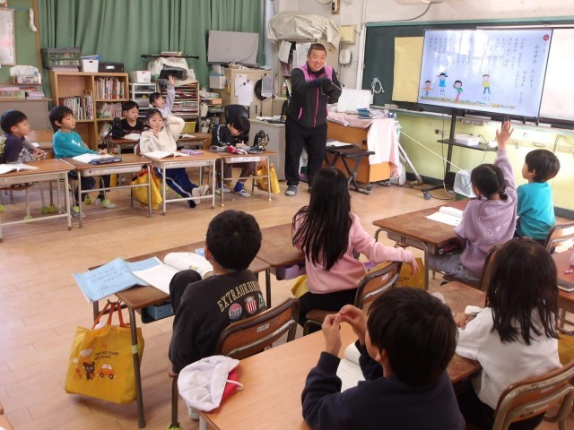 1組は、国語の「詩をよもう」の学習で、詩の中の表現について実際の動作で楽しく確かめていました。