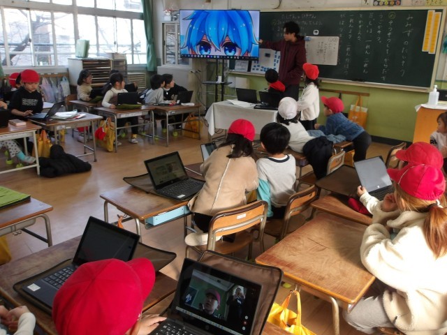 2組は、自分の学習者用端末の画面を、写真を撮影したり画像を検索したりして、自分好みにカスタマイズしていました。
