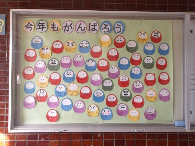 玄関の掲示板に、新年や3学期の目標が掲示されています。
