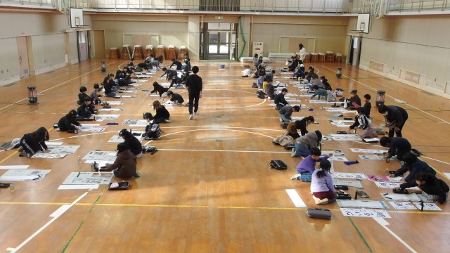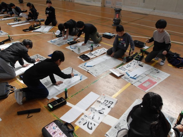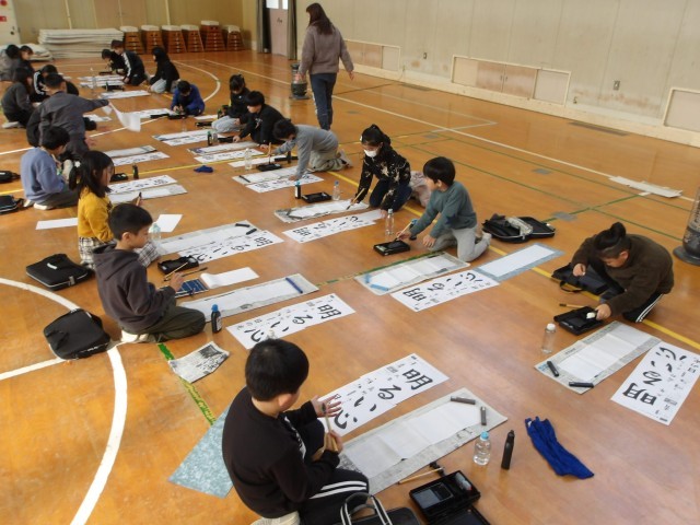 緊張感のあるよい雰囲気で、書き初めのすばらしい体験ができました。