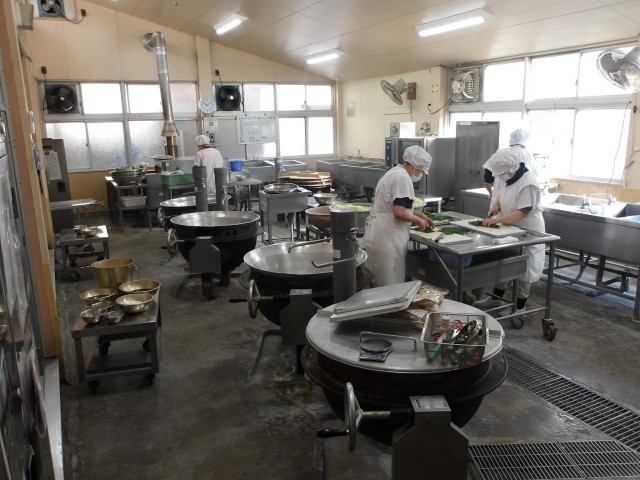 冬の給食調理室での調理は、寒く、水も冷たくとても大変な作業です。