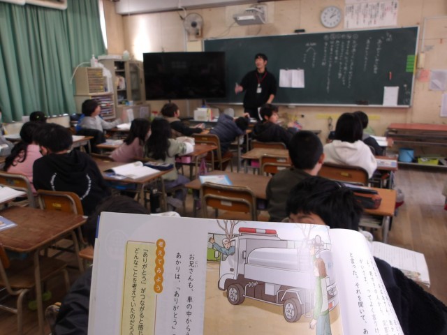 5年生は5時間目に道徳で、阪神淡路大震災での話【「ありがとう」がつながる】の学習をしていました。