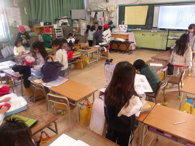 1組も2組も、朝、ランドセルの持ち物を出して学習の準備をしたり、連絡帳を確認したり、提出物を出したり、「心の天気」の入力をしたりしています。みんな自分のことを自分できちんとできるようになりましたね。