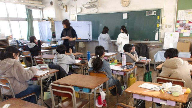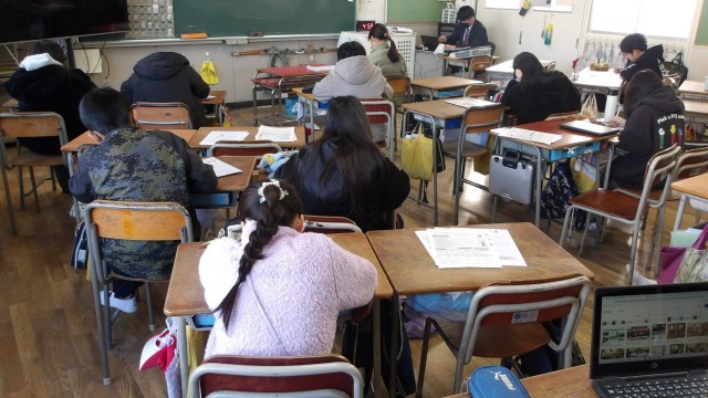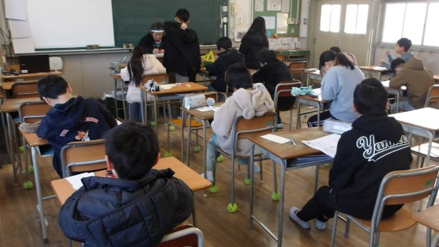 6年生は、分割教室と1組と2組と3組で算数の学習をしていました。