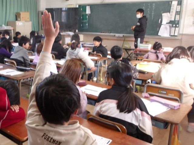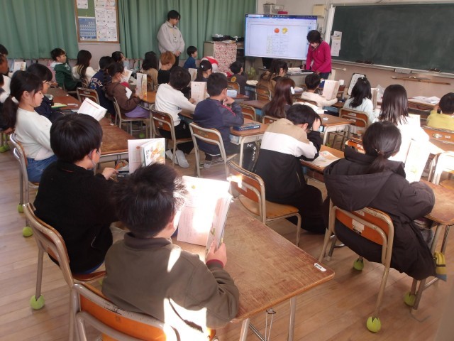 「レモン」と「りんご」の同じところと違うところを文章に書いて説明する学習をしています。