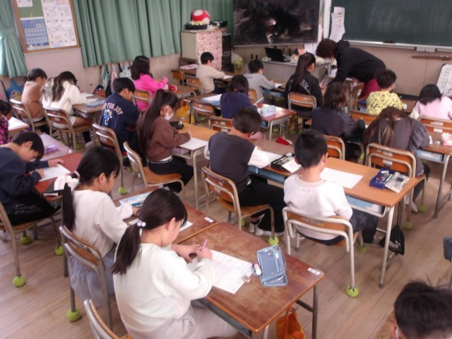 1組は、漢字テストをしていました。集中して問題に取り組んでいました。