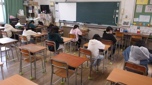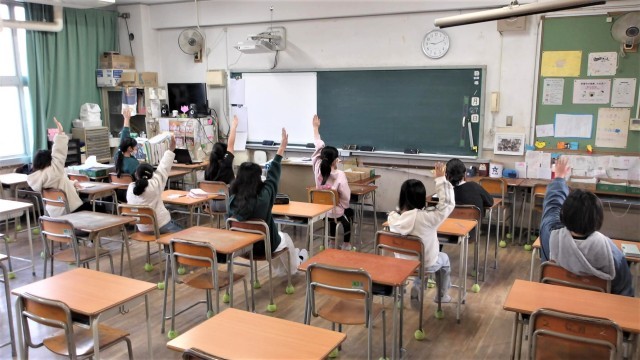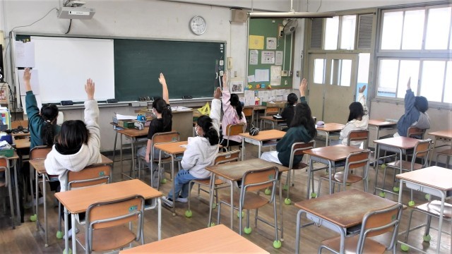 分割教室は、算数の学習で、みんなとてもまっすぐ手を挙げたり、集中して学習したりしている様子でした。