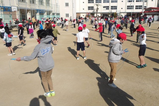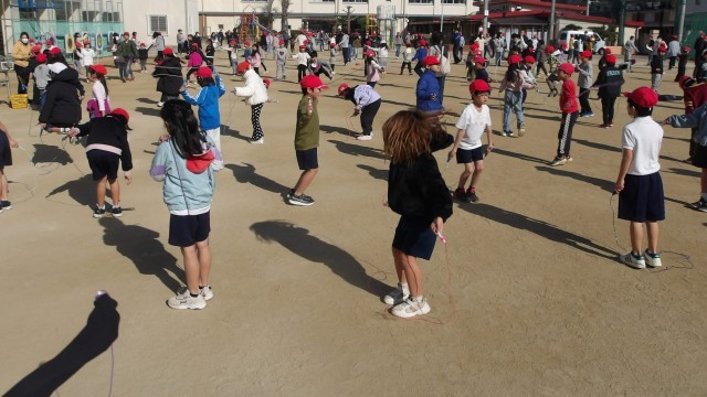 みんな笑顔で、いろいろな跳び方にチャレンジしています。