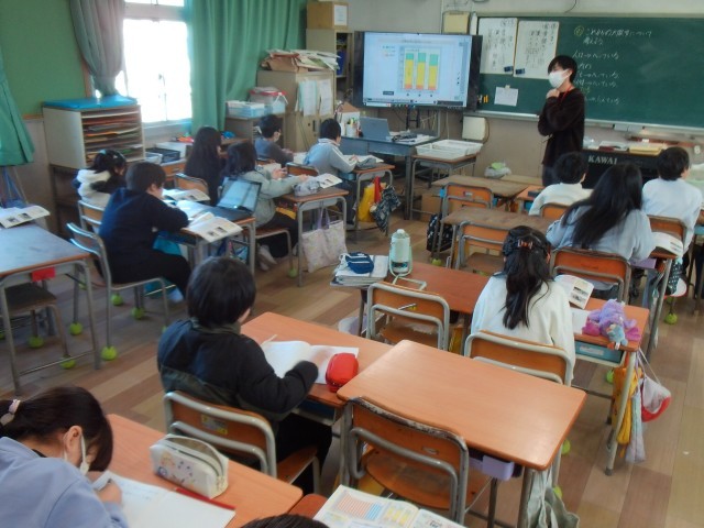 1組は、「これからの大阪市」の学習で、年代別の人口について調べていました。
