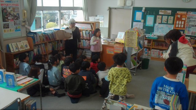 1組は、図書室で学校司書の先生に読み聞かせをしてもらっていました。いろいろな動物の体の大きさをメジャーで確かめながら楽しく読み聞かせをしてもらいました。