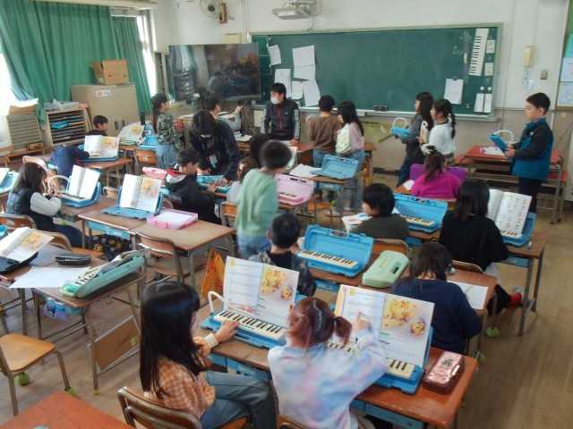 2組は、歌や鍵盤ハーモニカの確認をしていました。リズムに乗って楽しそうに体を動かしています。