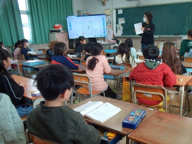 2組では、全員で書き順を声に出しながら「空書き」をして、新出漢字の確認をしていました。