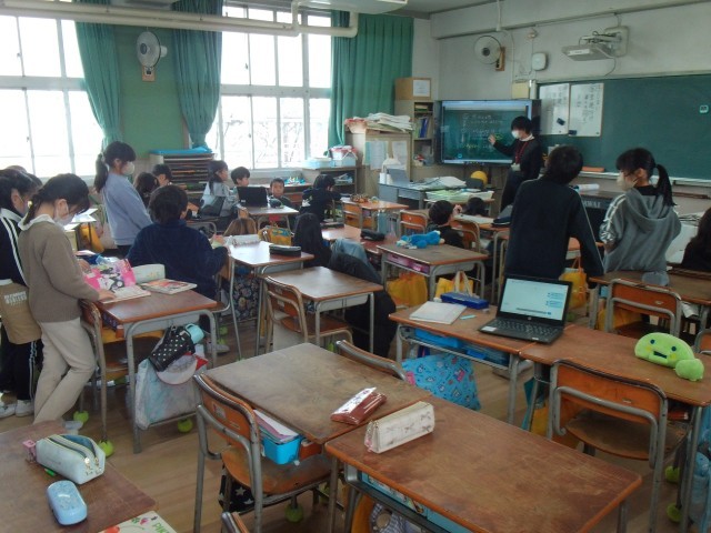 2時間目は、1組は「山之内のいいところ」「こんな山之内にしたい」の学習を、2組は、国語の「クラスの思い出つくりのために」の学習をしていました。2クラスとも自分の考えをよく発表していました。