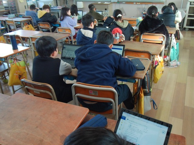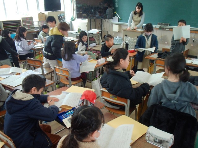 5時間目は、1組では、道徳の「いつもありがとう」の話で感謝の気持ちについて学習していました。2組では、国語の「カミツキガメは悪者か」のテスト返しをしていました。