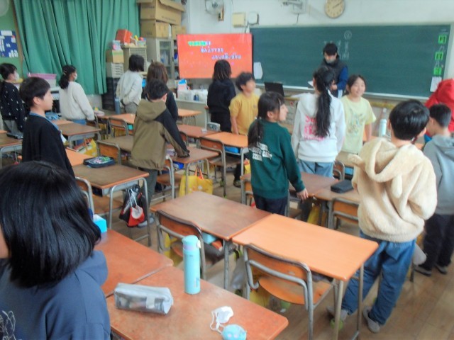 1時間目は、1組は総合的な学習の時間の「10年間をふり返って」の学習をしていました。2組は席替えをしていました。ワクワクドキドキが伝わりました。