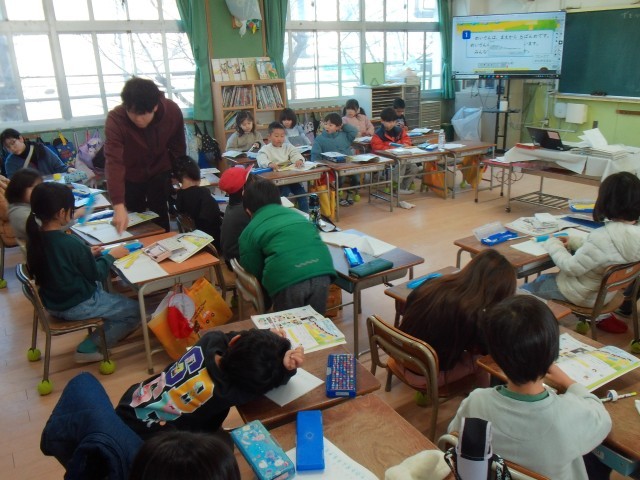 2組は、1時間目に算数の「図を使って考えよう」の学習をしていました。5時間目は、国語の「ことばをあつめよう」の学習をしていました。