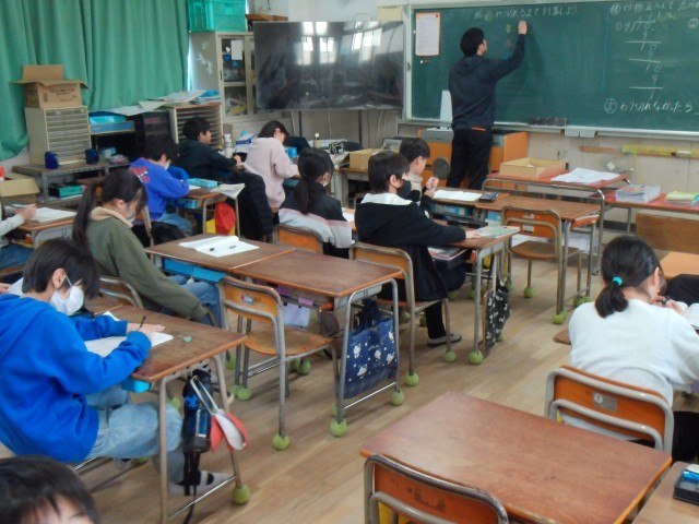 1時間目は3クラスに分かれて算数の「がい数」の学習をしていました。