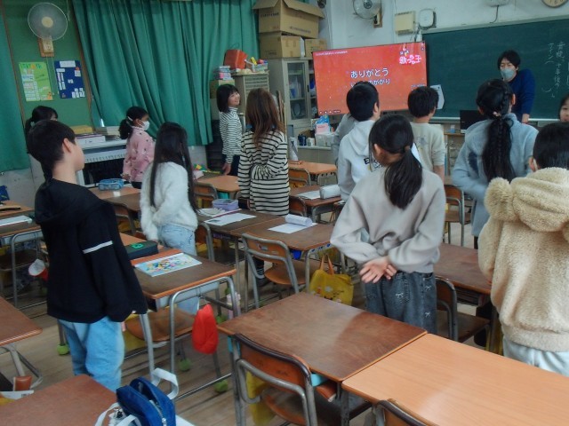 5時間目は、1組は音楽で、感謝の歌の合唱をしていました。2組は理科の「水の温まり方」の学習をしていました。