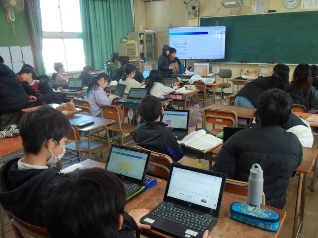 1時間目は、1組は参観で使う掲示物の準備をしていました。2組は国語の「意見を書くために考えを整理して」の学習をしていました。