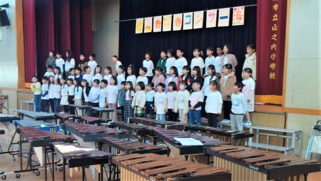 山之内保育所と遠里小野幼稚園と3年生を招待しての「ぽっかぽかコンサート」がありました。