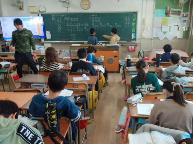 3つのクラスで、算数の「小数のわり算」の学習をしていました。