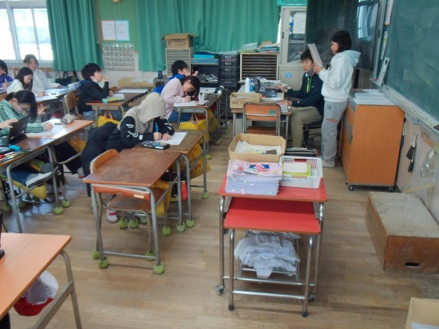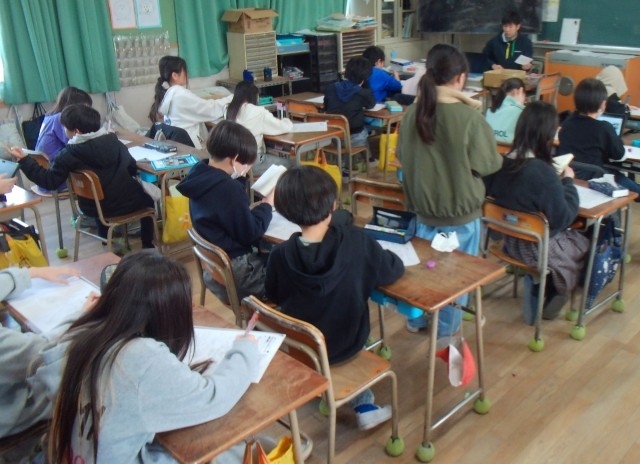 2組は、「2分の1成人式」の発表の練習をしたり、学習者用端末でタイピングの練習をしたりしていました。